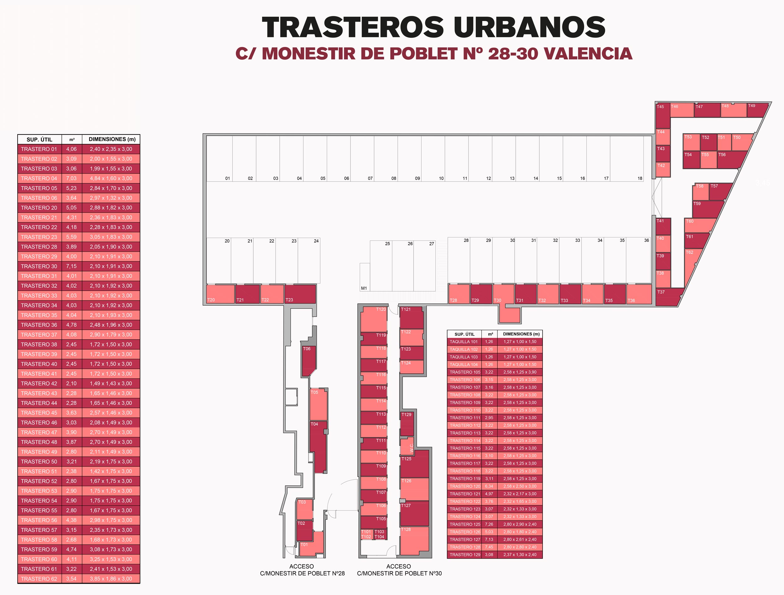 Ubicado en el barrio de Campanar – Valencia ofrece un espacio con trasteros tamaño TAQUILLA, ALMIRANTE – S y ALMIRANTE – M, ALMIRANTE-L. Además de Plazas de Garaje.